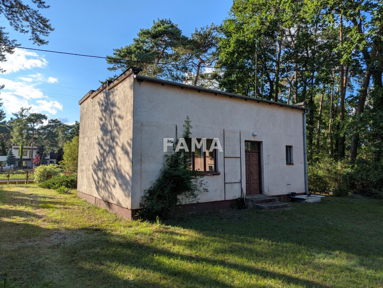 Za domem, w drugim planie, stoi budynek gospodarczy murowany o powierzchni około 20 mkw, z doprowadzoną wodą z sieci i energią elektryczną, niegdyś wykorzystywany jako mieszkalny.