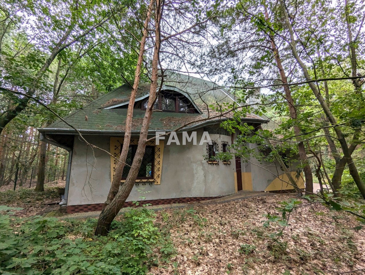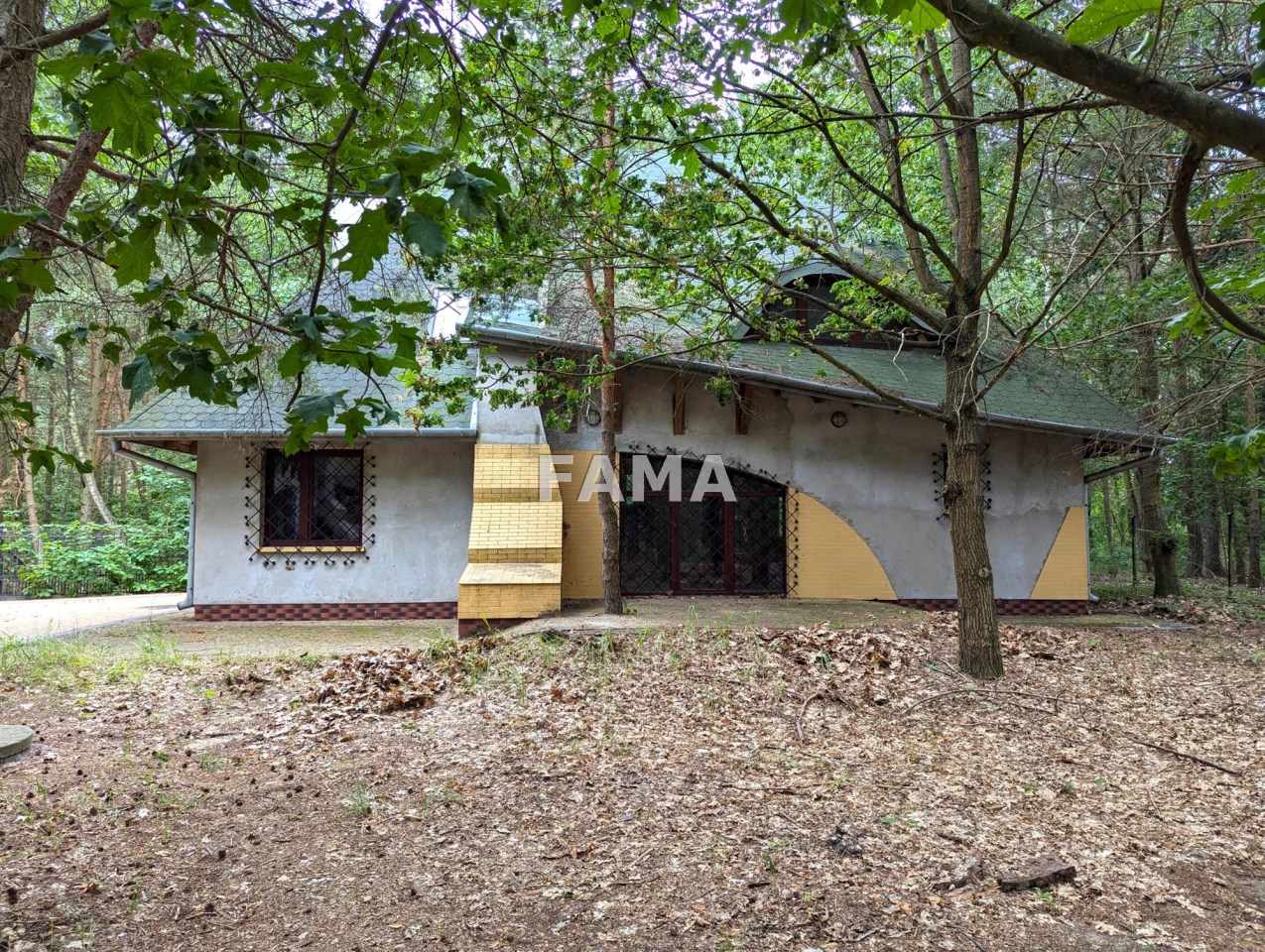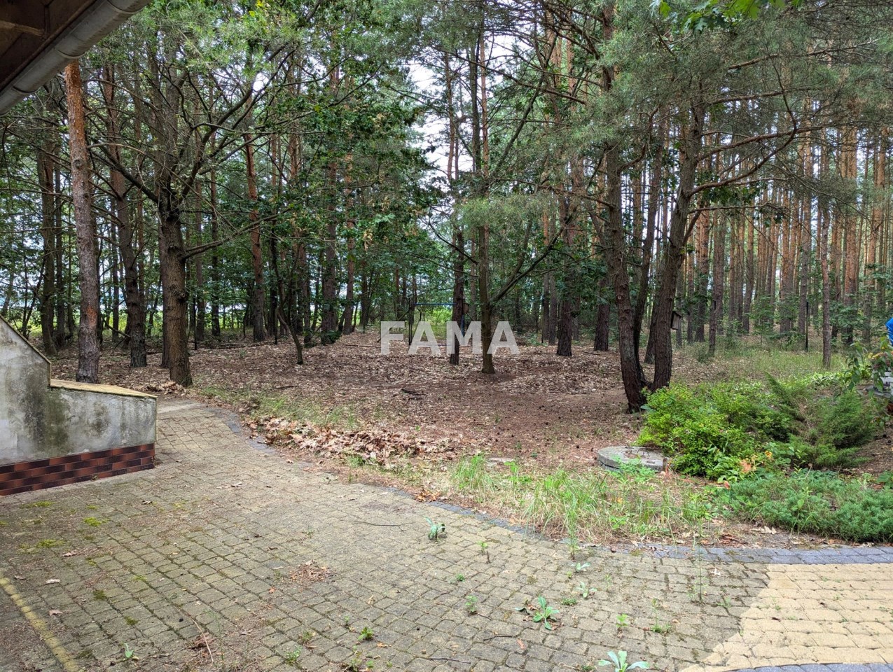 Działka 648 mkw – wieczystego użytkowania, zalesiona, zagospodarowana, podjazd i teren wokół domu wyłożony kostką brukową, ogrodzona, od frontu kutym parkanem metalowym, z bramą przesuwaną.