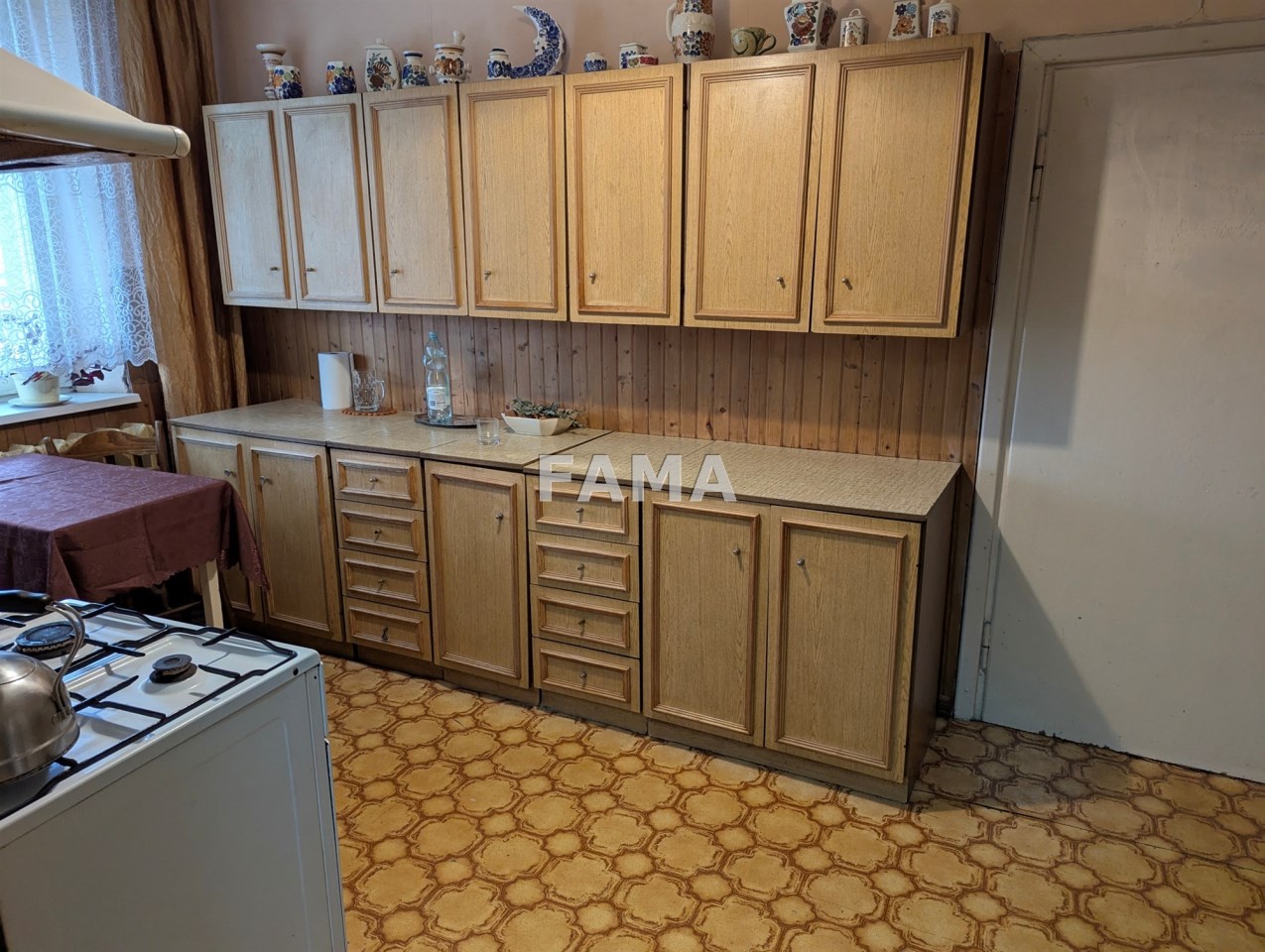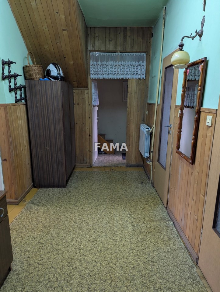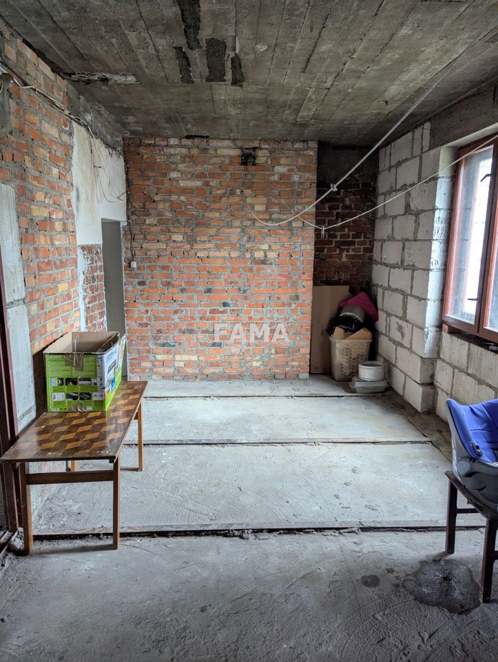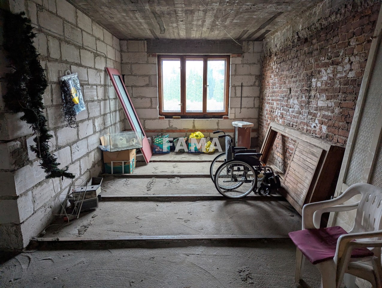 Dom połączony z dobudowanym w 1992 roku niedokończonym budynkiem parterowym, projektowanym jako budynek mieszkalny piętrowy, wybudowanym z pustaków i cegły, krytym papą, w stanie surowym zamkniętym, o powierzchni 58,07 mkw, całkowicie podpiwniczonym, z dużym garażem z kanałem w podpiwniczeniu, z wydzielonymi pomieszczeniami: dwa pokoje – 20,28 mkw i 18,37 mkw, kuchnia – 16,44 mkw i przedpokój - 2,98 mkw.