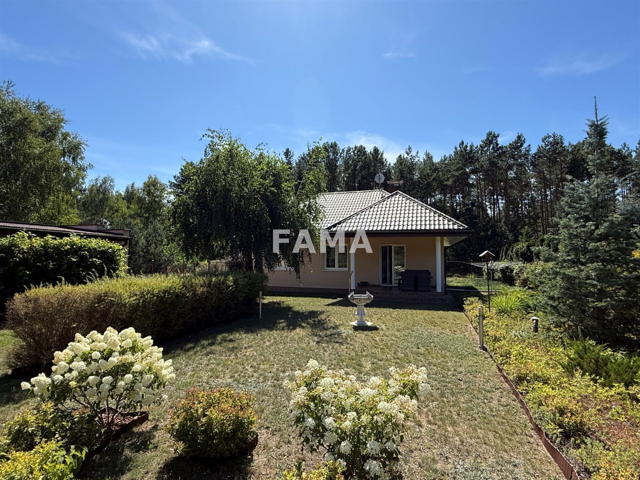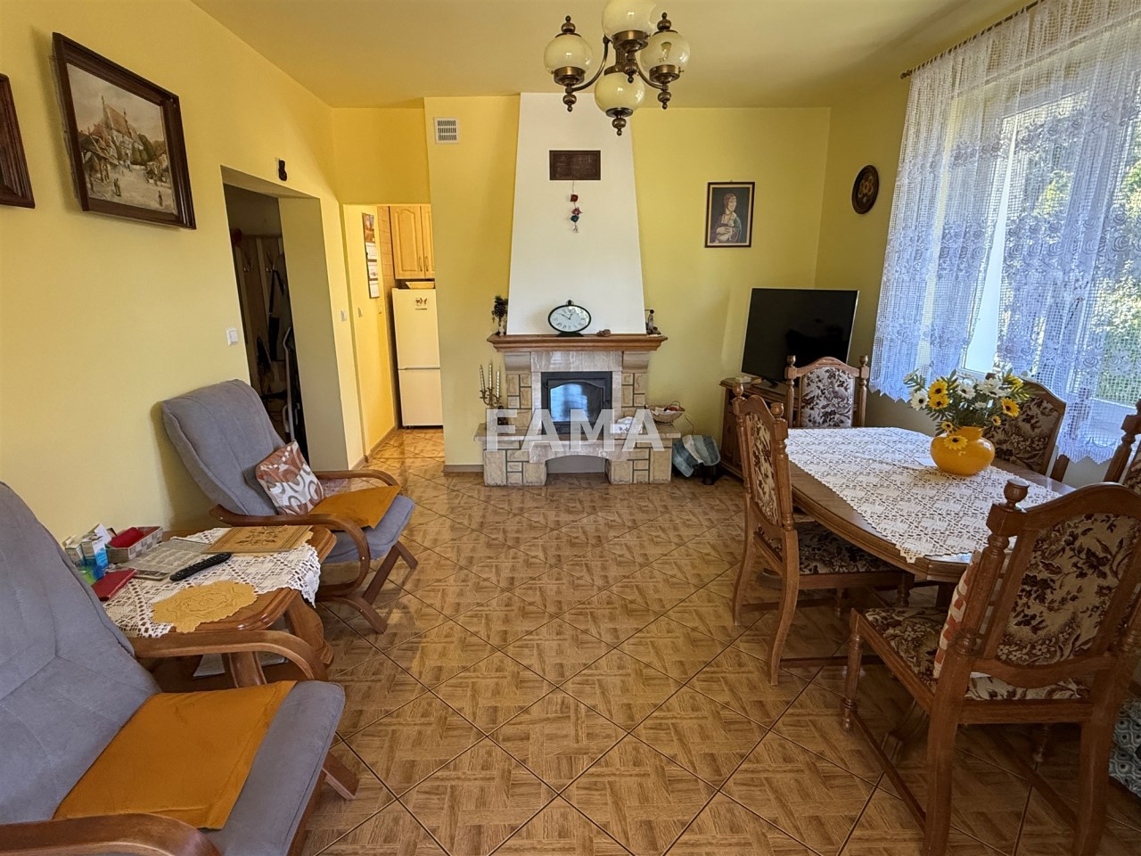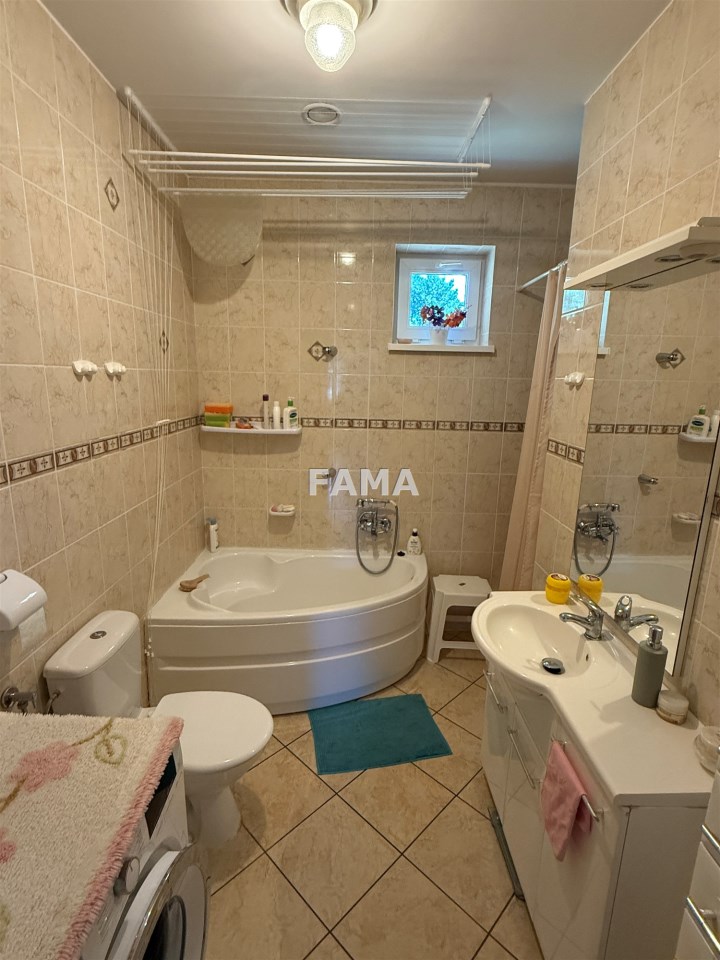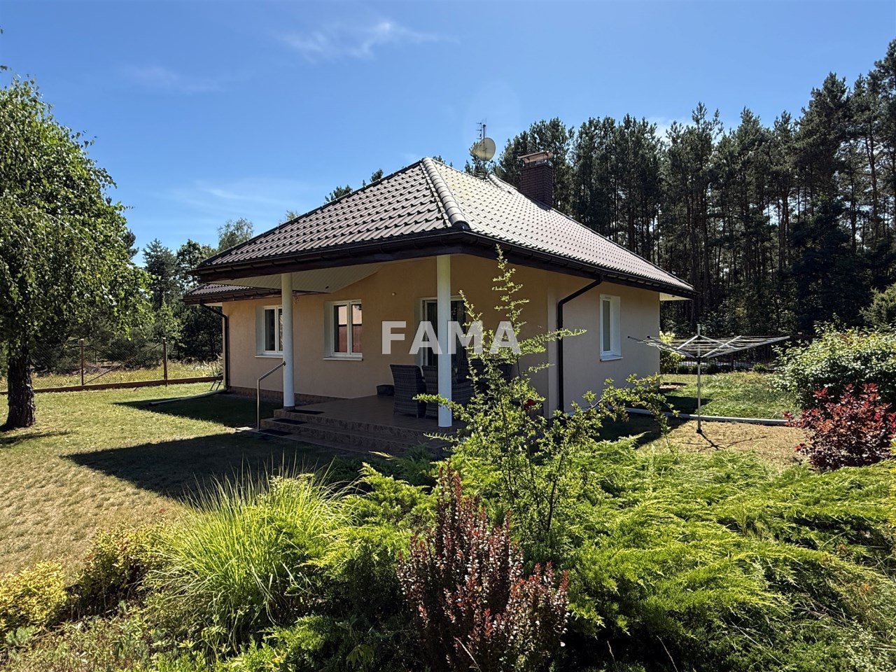 Wybudowany w 2007 r., z wyjątkową dbałością o detale, z Porothermu o grubości 24 cm, ocieplony 20 cm warstwą styropianu, strop również solidnie ocieplony z wylewką betonową, z dachem kopertowym, krytym blachodachówką, składa się z pokoju dziennego o powierzchni 18,58 mkw, z kominkiem, z wyjściem na taras, dwóch sypialni – 11,45 i 9,62 mkw, kuchni 6,06 mkw, łazienki 4,75 mkw, pomieszczenia gospodarczego, hallu i przedsionka i doskonale może w nim funkcjonować rodzina dwu-, trzy – lub czteroosobowa.
