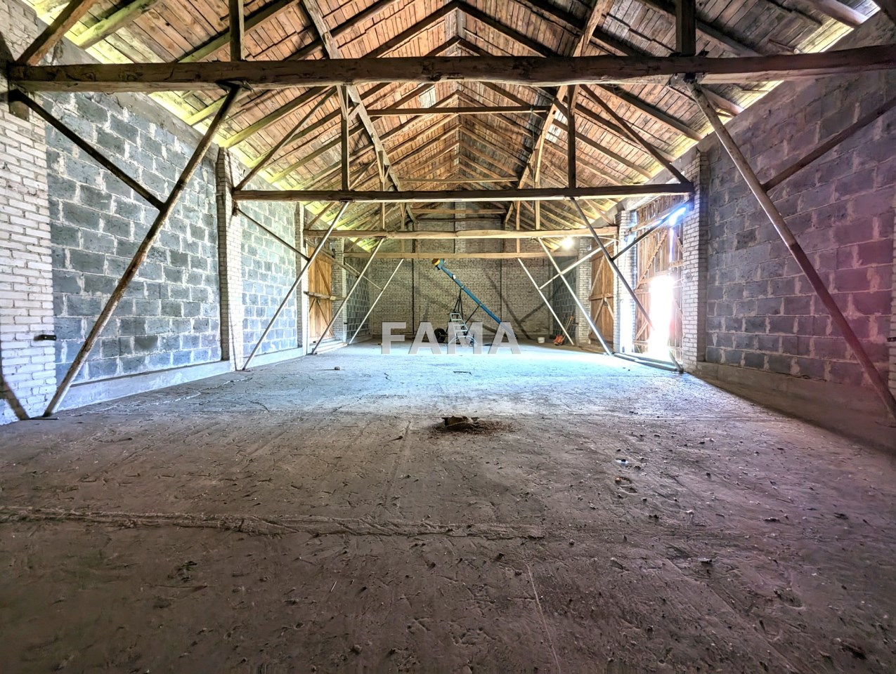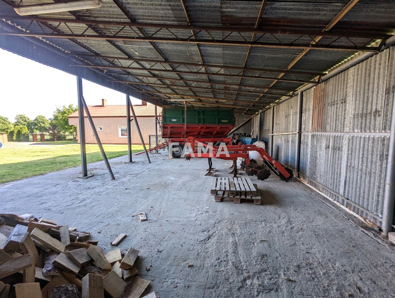 - budynek gospodarczy murowany, z pustaków, o powierzchni 184,46 mkw (21,65 m x 8,52 m), o wysokości 3,21 m – 6,96 m, z posadzką betonową, z trzema wrotami