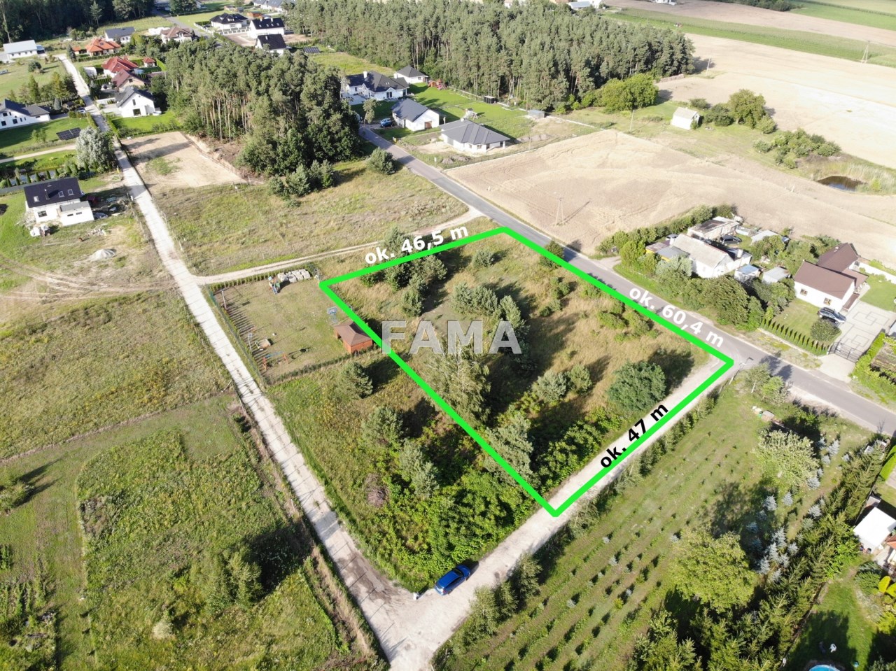 Dojazd drogą asfaltową. Blisko działki szkoła, żłobek, przedszkole, ośrodek zdrowia, duży sklep.