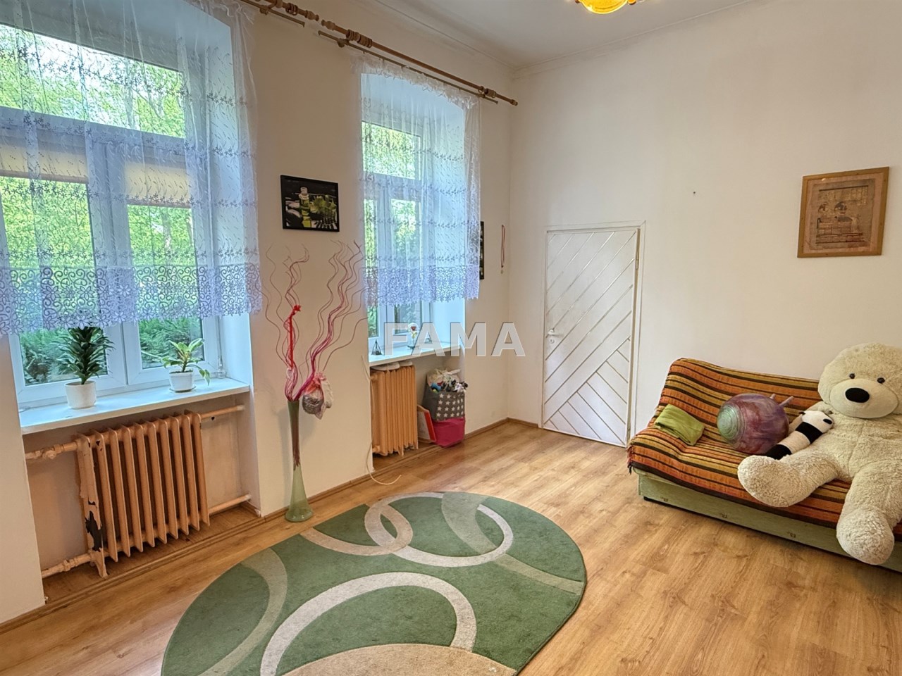 Mieszkanie 2-pokojowe o powierzchni 75,55 mkw, położone na parterze stylowej kamienicy z początku XX wieku, w miejscowości Chełmica Duża, gmina Fabianki, projektowane dla zarządu przedwojennej cukrowni w Chełmicy, solidne ściany o grubości około 1 m, ciepłe, przestrzenne, o wysokości 3,47 m, z osobnym wejściem z zewnątrz - 2 duże pokoje, okna PCW, w pokojach na ścianach płyty karton-gips malowane, w łazience – glazura, terakota, białe meble łazienkowe, w kuchni również płytki, zabudowa meblowa z kuchenką gazową 4-palnikową z piekarnikiem.