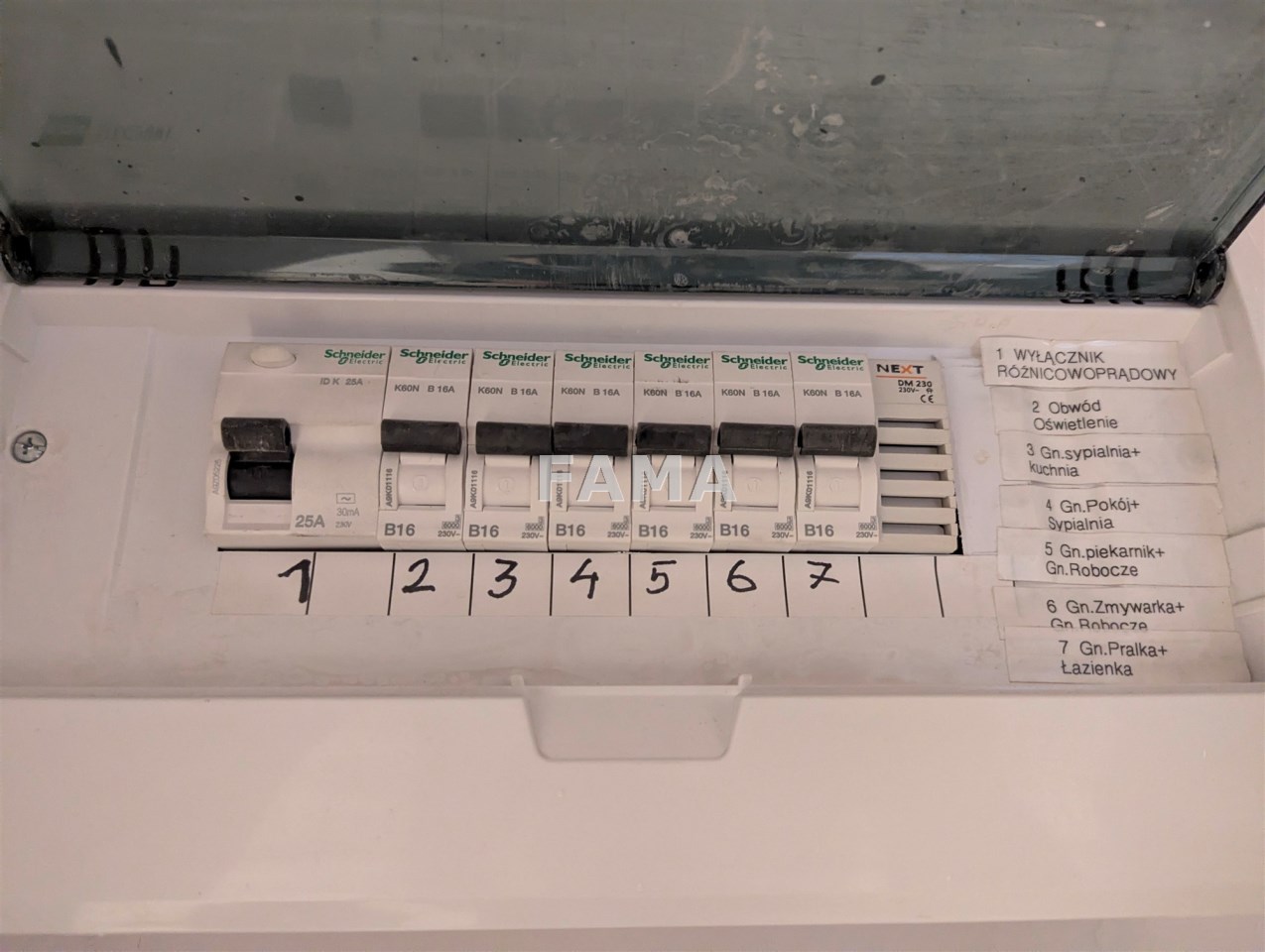 Całkowicie odnowione ! Nowa instalacja elektryczna wraz z rozdzielnicą, instalacja wodna, w pokojach, w przedpokoju i w kuchni na podłodze jasne panele, na ścianach i sufitach biała gładź, białe listwy przypodłogowe, białe meble kuchenne z wbudowanym sprzętem AGD – pralką Amica, płytą gazową, piekarnikiem elektrycznym, wyciągiem, zmywarką Amica, kuchenką mikrofalową – nad szafkami drobne, białe lamele, ekologiczne okna drewniane. W łazience z WC, na wzór skandynawski, niczym w saunie, ściany i podłoga wyłożone ciepłym i relaksującym drewnem, zabezpieczonym specjalistycznymi preparatami przed wilgocią, śnieżnobiałe urządzenia sanitarne, artystycznie opracowane i oświetlone lustro nad umywalką.