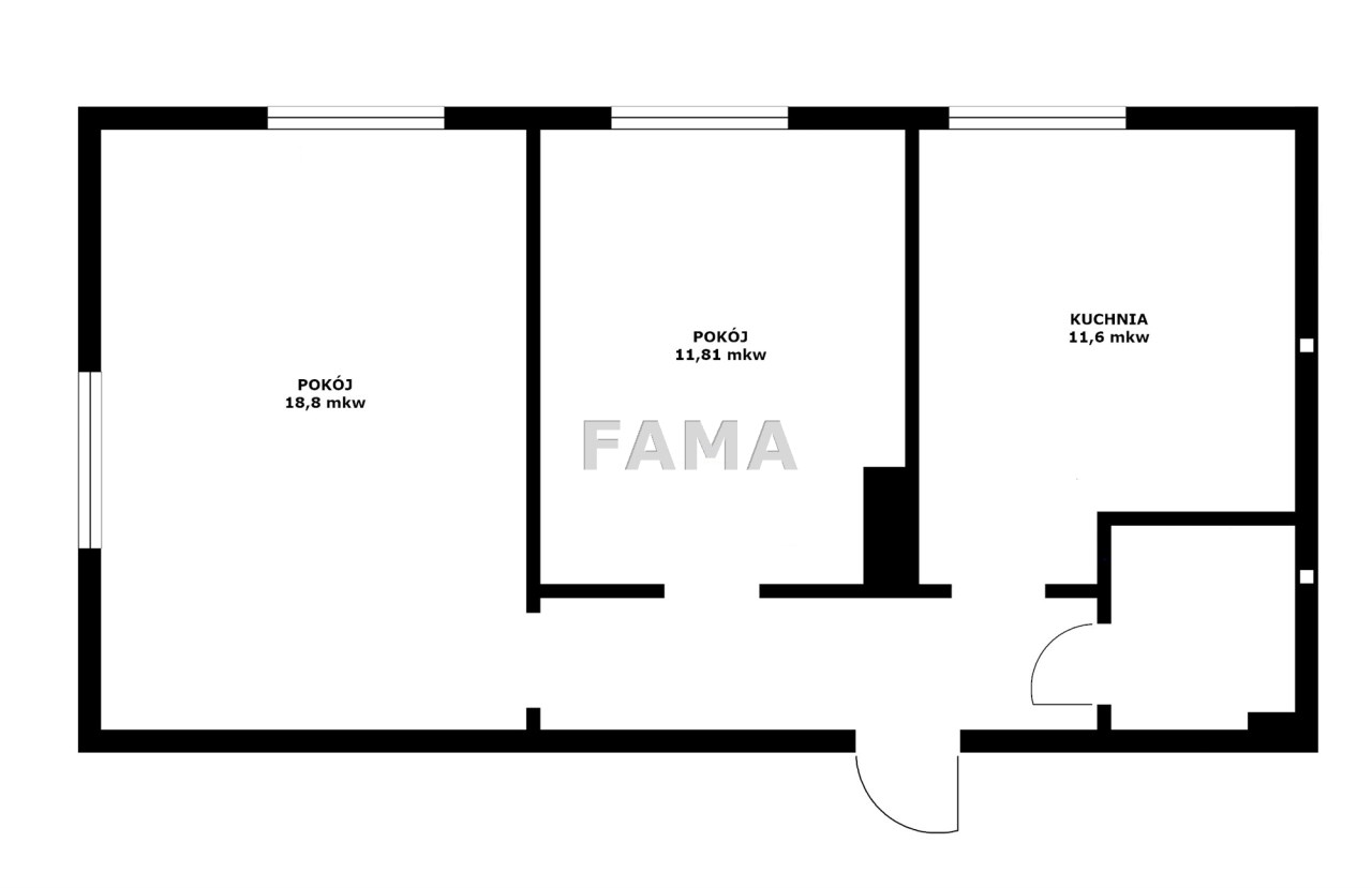 Mieszkanie przestrzenne, pomieszczenia wysokie na 2,75 m, bardzo dobrze nasłonecznione, duży pokój o powierzchni 18,80 mkw, mniejszy - 11,81 mkw, kuchnia - 11,60 mkw, łazienka z WC - ok. 2,80 mkw, przedpokój ponad 6 mkw,