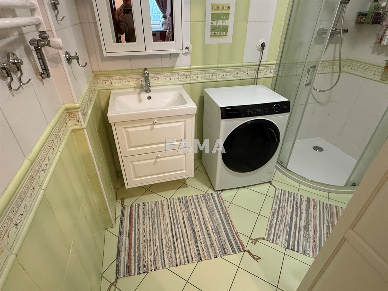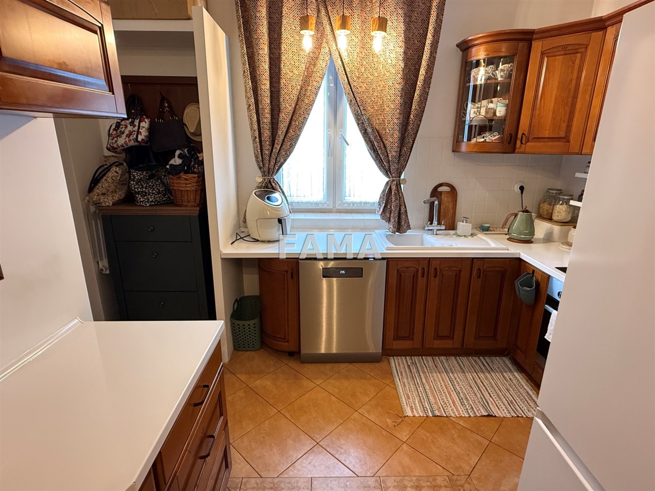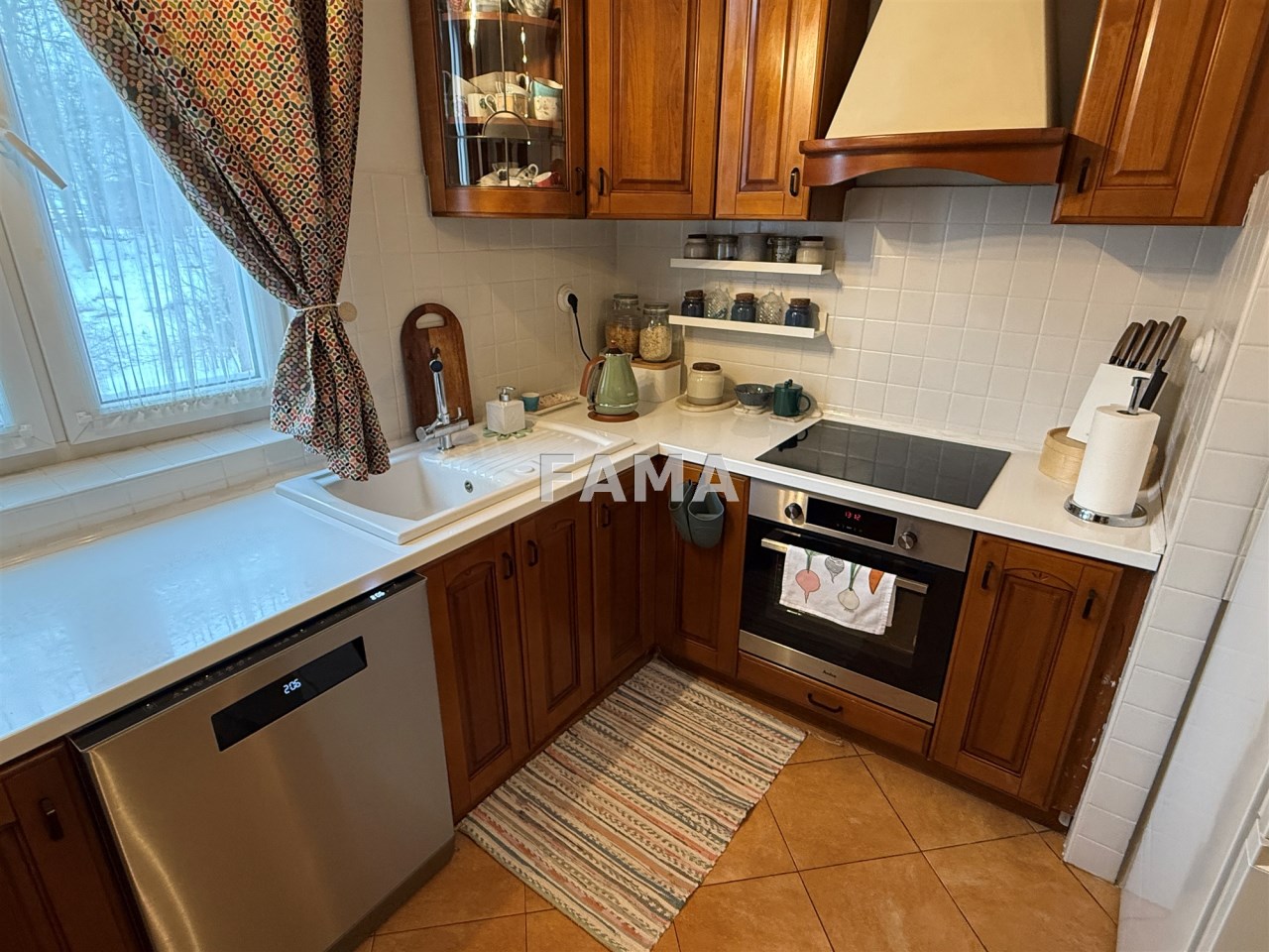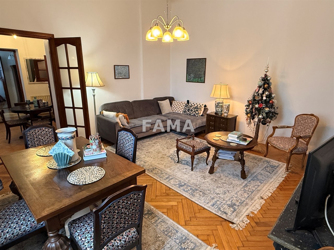 Aranżacja mieszkania cechuje się wysokim poziomem spójności i estetycznej harmonii, styl mieszkania podkreślają: szerokie, stylowe odrestaurowane drzwi między poszczególnymi pomieszczeniami, długie firany i zasłony gobelinowe, nowe żyrandole oraz śliczne porcelanowe włączniki, ciepłe przestrzenne, o wysokości 3,47 m, salon o powierzchni 23,28 mkw, dwa pokoje 15,32 i 14,82 mkw, jasna kuchnia, połączona z hallem 15 mkw, łazienka z WC 4,74 mkw, ganek 2,99 mkw, wykończone w wysokim standardzie: okna PCW, w pokojach na podłodze parkiet, na ścianach i sufitach gładź, w łazience – glazura, terakota, w kuchni również płytki, zabudowa meblowa z nowym sprzętem AGD: płytą elektryczną, piekarnikiem, zmywarką, lodówką – wszystko w idealnym stanie, czyste, zadbane, dodatkowo zainstalowany filtr do wody pitnej. Na życzenie może pozostać umeblowanie. CO z lokalnej kotłowni, ciepła woda zimą z pieca CO, latem z bojlera elektrycznego, odpływ do kanalizacji gminnej.