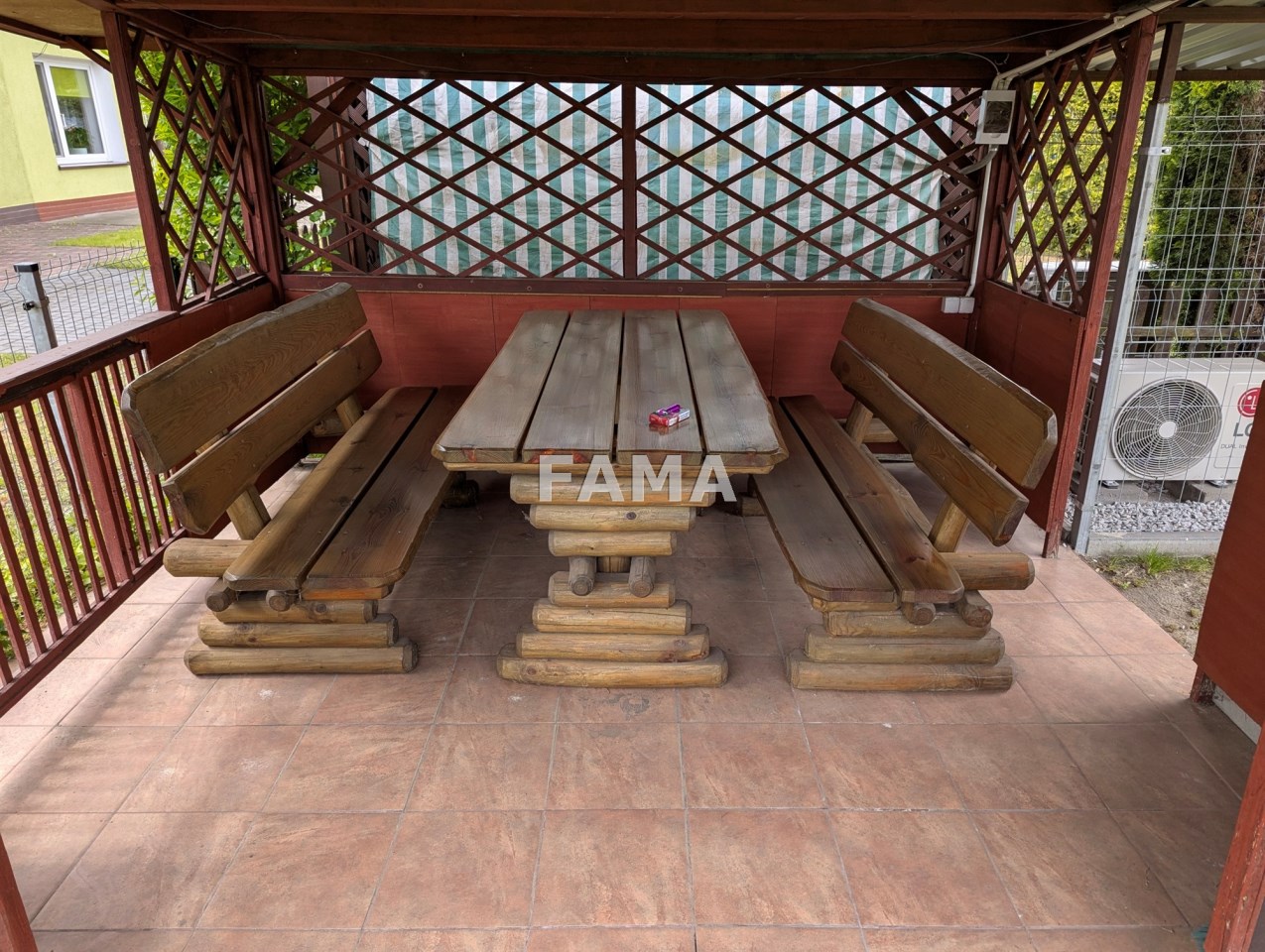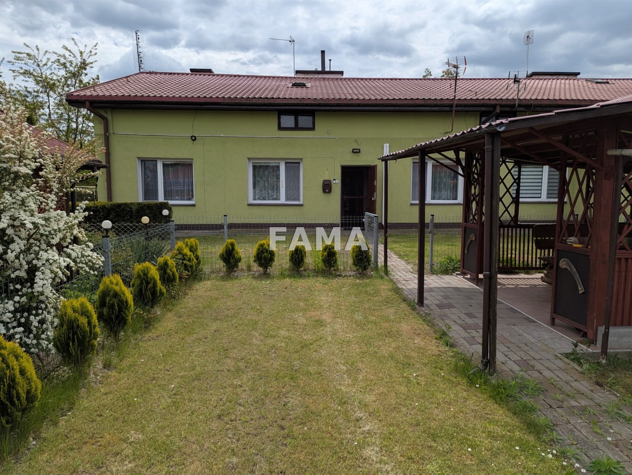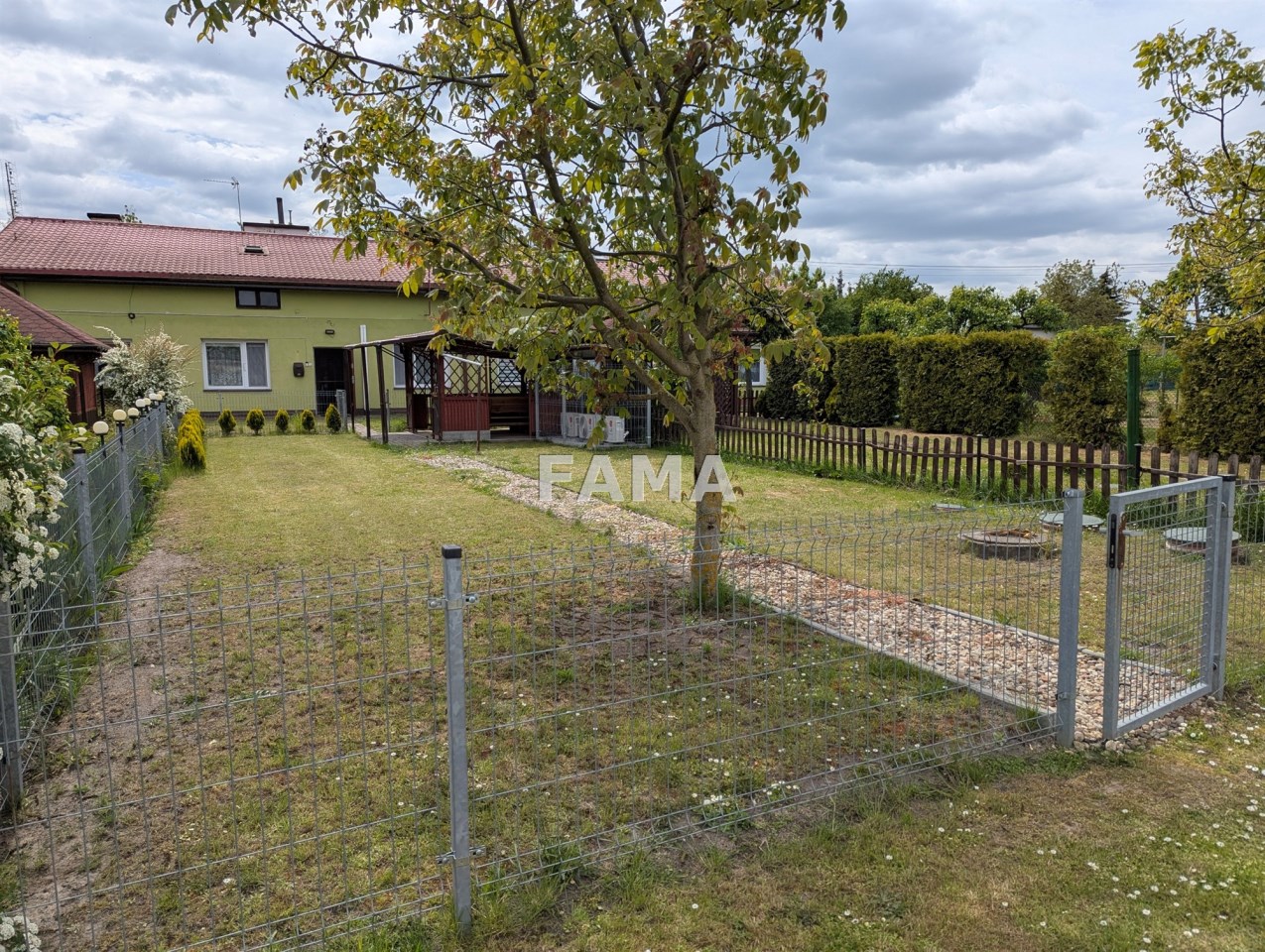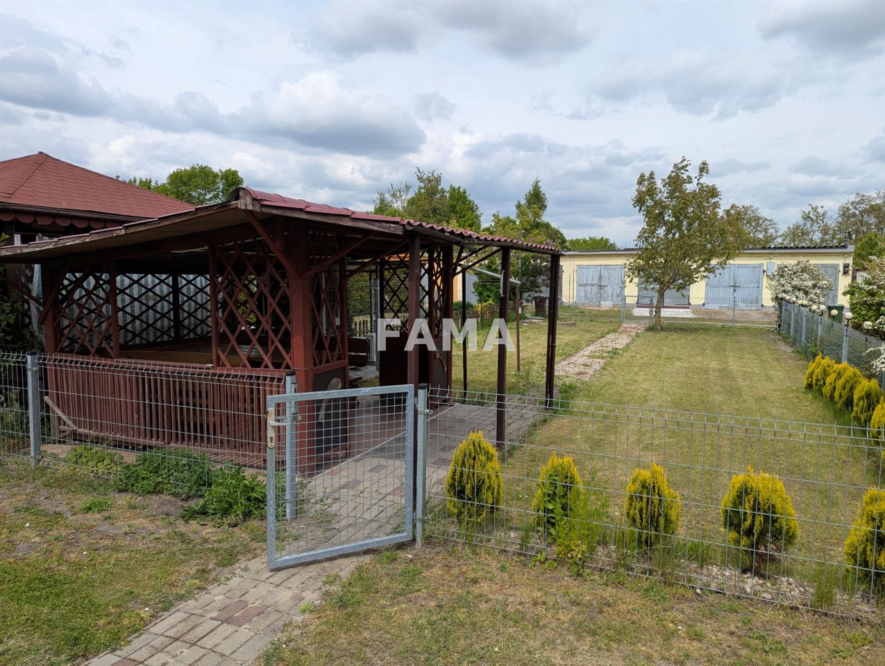 Przed budynkiem, ogrodzona siatką i drewnianym parkanem, zagospodarowana, działka ok. 170 mkw, z altaną, do wyłącznego użytkowania, kilkadziesiąt metrów dalej podobna, umownie wydzielona, działka warzywna, do zagospodarowania.