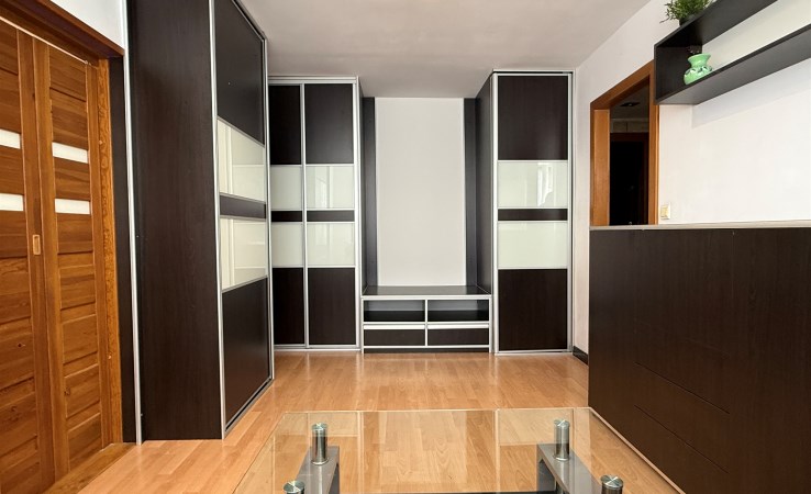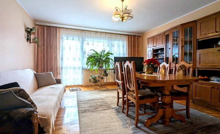 Mieszkanie dwustronne, przestrzenne, jasne, ze średnim balkonem, lekko zmodyfikowany klasyczny rozkład typowego M-4 na Os. Południe – mały pokój połączony z kuchnią, zamieniony na jadalnię, razem 13,92 mkw, salon o powierzchni 24,87 mkw, sypialnia 12,10 mkw, osobno łazienka z wanną, osobno WC - całkowicie wykończone, wolne, do zamieszkania: okna PCW, z roletami materiałowymi od strony południowej, z parapetami, drzwi wejściowe antywłamaniowe „Gerda”, w pokojach na podłodze parkiet dębowy, w przedpokoju na podłodze jasny gres szkliwiony, na jednej ze ścian ozdobne płytki gipsowe, podwieszony plafon z oświetleniem, w łazience glazura i terakota z oryginalnymi dekorami, w WC także jasna glazura, terakota, podobnie w kuchni: kolorowa terakota, jasna glazura, w cenie pozostaje zabudowa meblowa wraz z kuchenką gazową, zmywarką, szafa z drzwiami przesuwnymi w przedpokoju, ewentualnie, na życzenie kupującego, pozostałe umeblowanie.