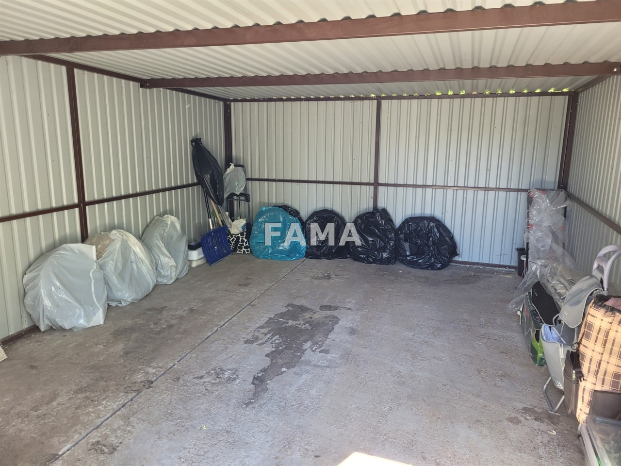 Może być z garażem-blaszakiem o powierzchni 20 mkw (4 m x 5 m), posadowionym na betonowym postumencie przed budynkiem.