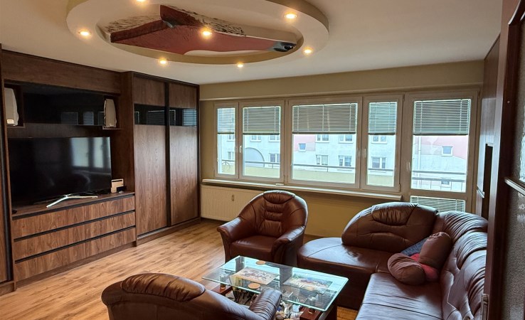 Mieszkanie 3-pokojowe o powierzchni 64,10 mkw + użytkowana piwnica 3,37 mkw, położone na parterze bloku 4-piętrowego, na Os. Południe Jednostka E, we Włocławku, z balkonem loggią.