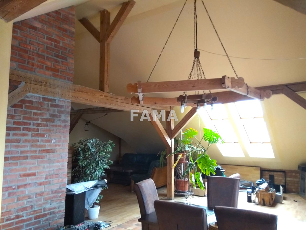 Mieszkanie 4-pokojowe o powierzchni 144,36 mkw, z przynależną piwnicą 41,30 mkw, poddaszowe, mierząc po podłodze około 250 mkw, położone na 2. piętrze w Centrum Włocławka, w modernistycznym budynku z lat 30-tych XX wieku, ostatnio przywróconym do lat świetności: położony nowy dach (blachodachówka), ocieplony grubą warstwą wełny mineralnej, cały budynek ocieplony z zewnątrz styropianem, otynkowany, świeżo pomalowany, wcześniej doprowadzone ogrzewanie i ciepła woda z MPEC-u. Aktualnie wydzielone są dwa mieszkania: salon z kominkiem, z antresolą, duży pokój, kuchnia, łazienka z sauną I duży pokój z kominkiem, z kuchnią i łazienką, z kabiną prysznicową, jest konstrukcja pod taras, rozkład pomieszczeń można aranżować w dowolny sposób – są tylko ściany działowe, nie ma ścian nośnych. W mieszkaniach częściowo zachowane ściany z oryginalnej, ładnej, cegły czerwonej, częściowo obłożone płytami karton-gips, na podłodze, utwardzonej styrodurem, wylewka samopoziomująca, pionowe okna PCW, połaciowe okna drewniane Velux – dzięki czemu pomieszczenia są wyjątkowo dobrze naświetlone, CO węglowe z piecem, opalanym miałem węglowym, w piwnicy, w korytarzu jest przyłącze z MPEC-u, do rozprowadzenia w mieszkaniu, nowe instalacje wodna i elektryczna (w miedzi). Czysta klatka schodowa z przedwojenną, kutą balustradą. Do dyspozycji właściciela garaż i dwa miejsca parkingowe w podwórzu. Miesięczny czynsz 1500 zł + opłaty za wodę, energię elektryczną i wywóz śmieci.