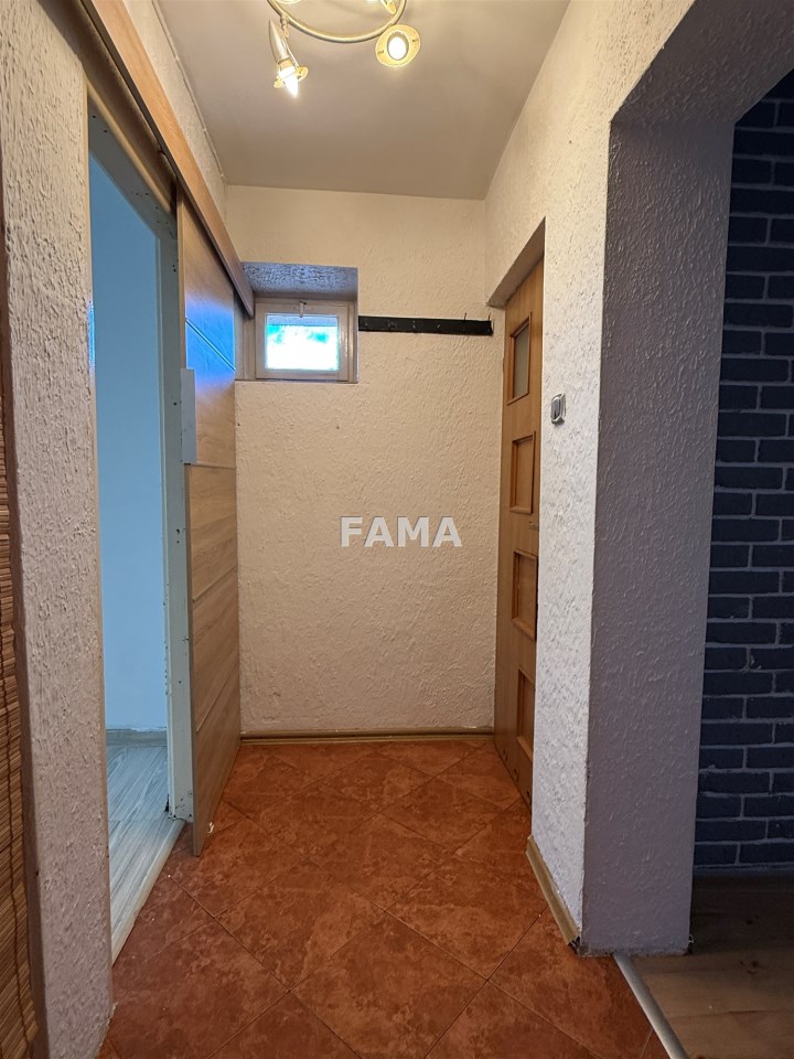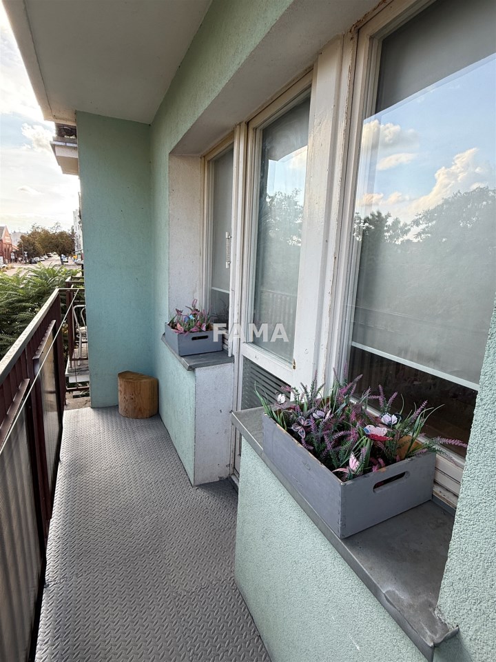 Mieszkanie 2-pokojowe o powierzchni 33,50 mkw, położone na 1. piętrze bloku 4-piętrowego, w Śródmieściu Włocławka, z balkonem loggią, kuchnia otwarta na duży pokój, z przedpokoju do dużego pokoju wejście przez drzwi przesuwne.